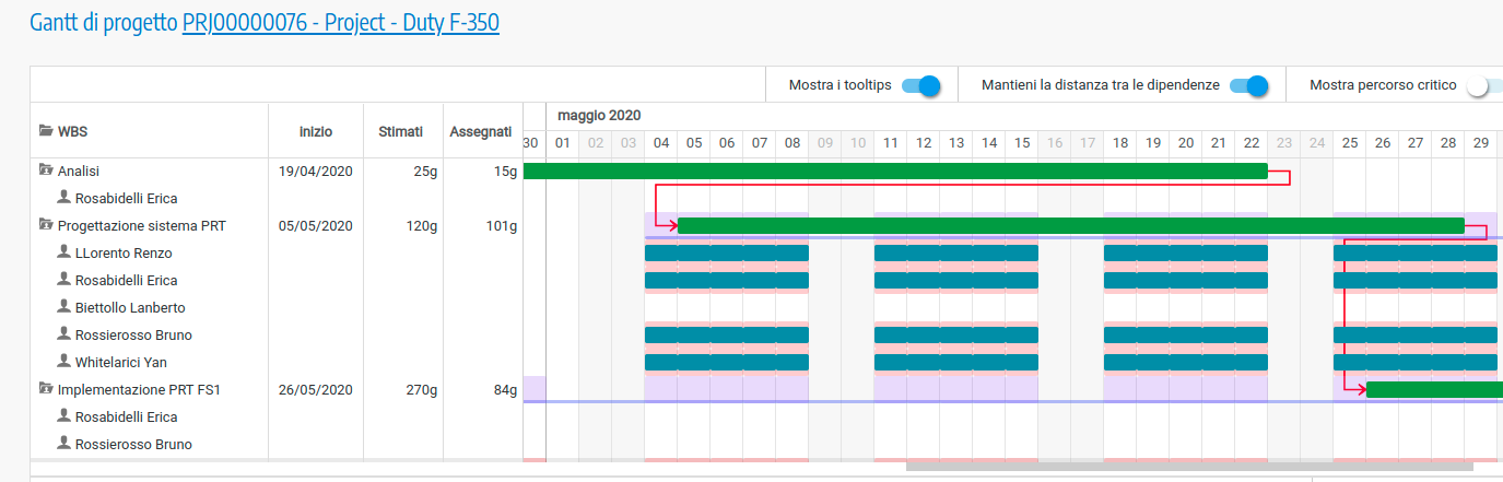 Man mano che il progetto avanzerà il Gantt di progetto procederà di conseguenza fornendo informazioni a tutti i membri del team sui progressi del progetto stesso. In questo modo sarà semplice comprendere lo stato di avanzamento e risolvere eventuali criticità che si possono riscontrare. L'accesso dei membri del team al Gantt di progetto sarà inoltre uno stimolo per raggiungere i traguardi previsti.