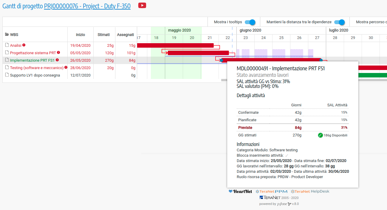 Esempio di diagramma dei progetti attualmente in corso, con dettaglio su un singolo progetto nel software T-GANTTQuando fare il diagramma di Gantt