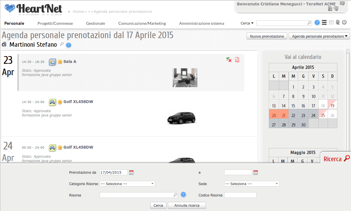 Il pacchetto di Prenotazione Risorse è progettato per le realtà aziendali che necessitano di gestire svariate risorse condivise.