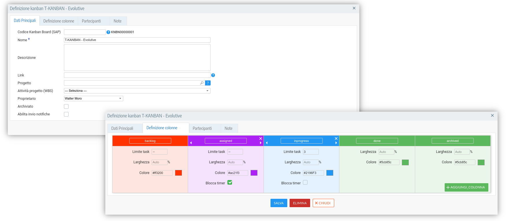 Creare board dinamiche, associandole ai progetti o alle attività della WBS, oppure kanban board tra gruppi di colleghi o personali non necessariamente legate ai progetti.