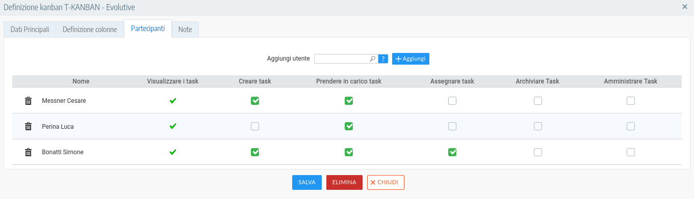 Assegnare i permessi di accesso e operativi ai membri del team, come ad esempio: