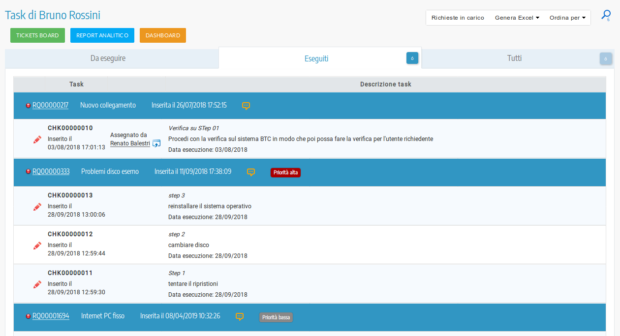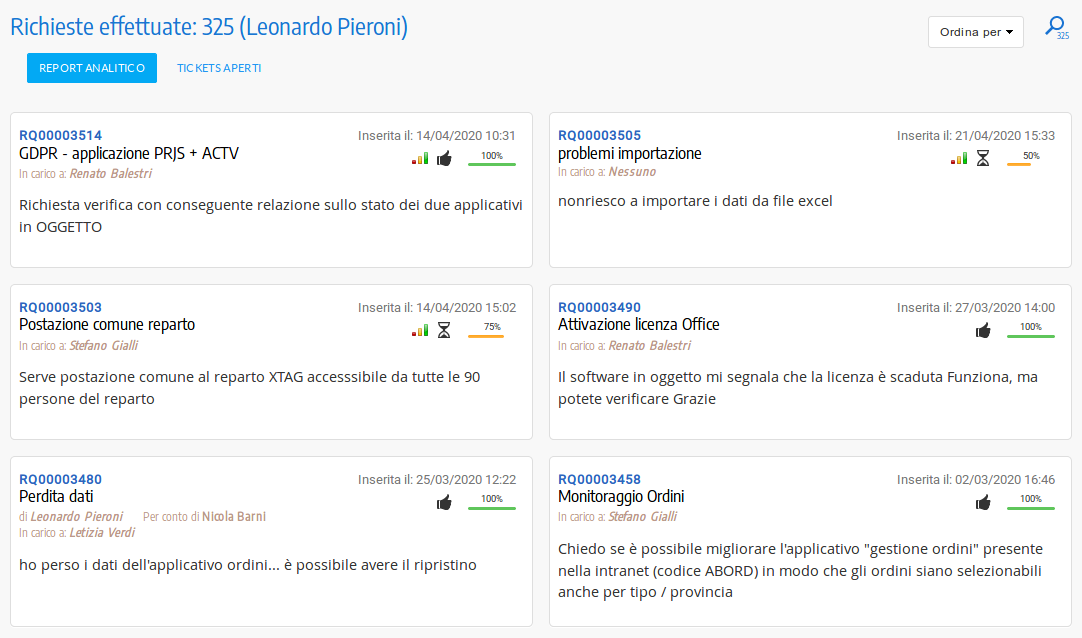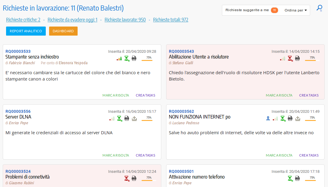 L'agente risolutore e il responsabile degli agenti risolutori hanno a disposizione svariate interfacce che permettono sia l'operatività sia l'analisi e la valutazione dei dati del sistema di ticketing. Mediante la Tickets Board sarà più chiaro e semplice il processo di gestione dei ticket assegnati agli agenti risolutori e gestiti dai profili di amministrazione. Scopri di più.