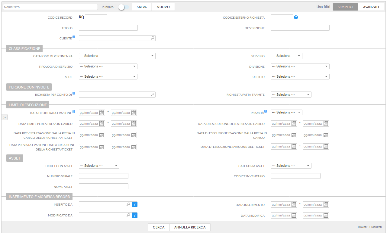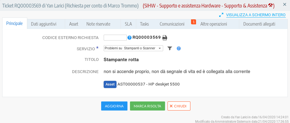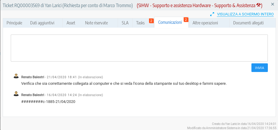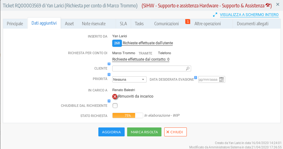 - Richieste di supporto