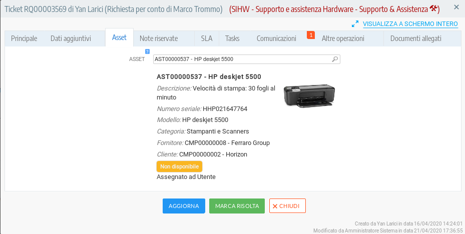 Con T-Asset è possibile gestire gli asset aziendali e gli asset assegnati agli utenti in tutta semplicità. T-Asset è il software integrato in T-HelpDesk che assicura una gestione efficiente del processo di supporto ed assistenza collegato. Aumenta l'operatività e semplifica gli interventi di assistenza agli agenti risolutori, migliorando contestualmente l'analisi dei dati. T-Asset è il modulo ideale per la gestione sia dei beni aziendali, in leasing o a noleggio presenti in azienda che dei prodotti installati presso i tuoi Clienti.